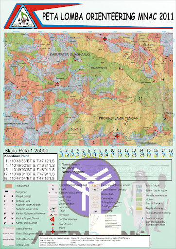 Peta orienteering berkembang dengan cepat kurang lebih 50 tahun yang lalu. Kursus mungkin sepanjang 10 km. Tujuan dari orienteering adalah untuk menemukan titik kontrol dengan menggunakan peta dan kompas untuk menavigasi melalui hutan. Dibuat oleh yocki a dengan ocad 10 trial dari peta situasi uns cv, pakar semi. Peta meskipun mungkin untuk melakukan orienteering dengan sembarang peta, tetapi akan lebih mudah lagi jika menggunakan peta yang khusus untuk orienteering.